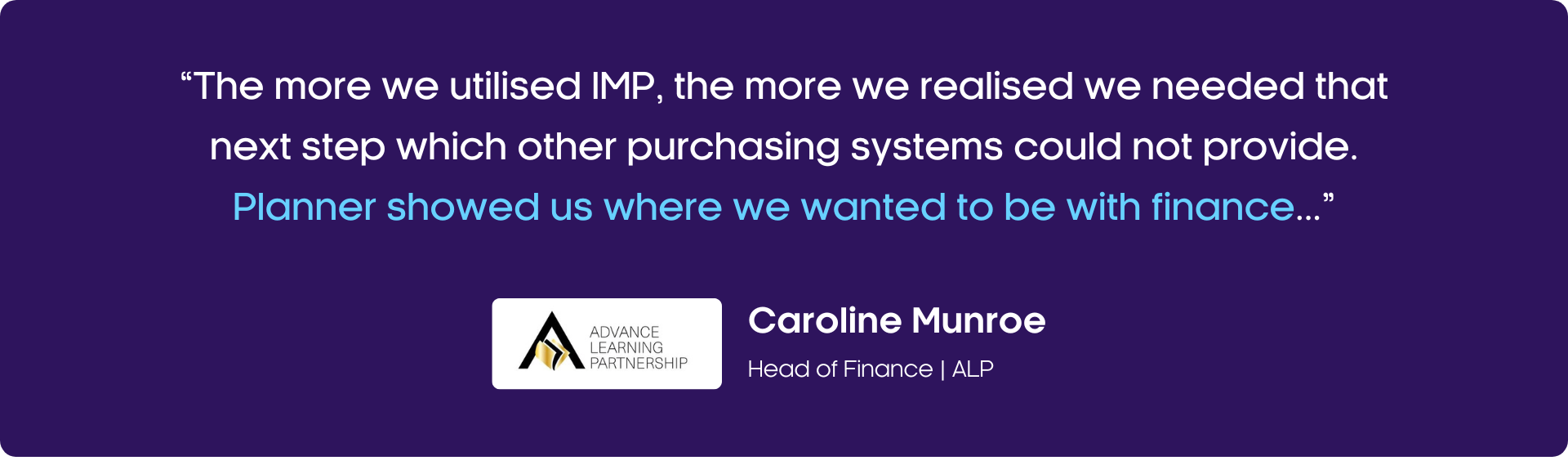 “The more we utilised IMP, the more we realised we needed that next step which other purchasing systems could not provide. Planner showed us where we wanted to be with finance, but we didn’t have the beginning steps to be able to get there.”