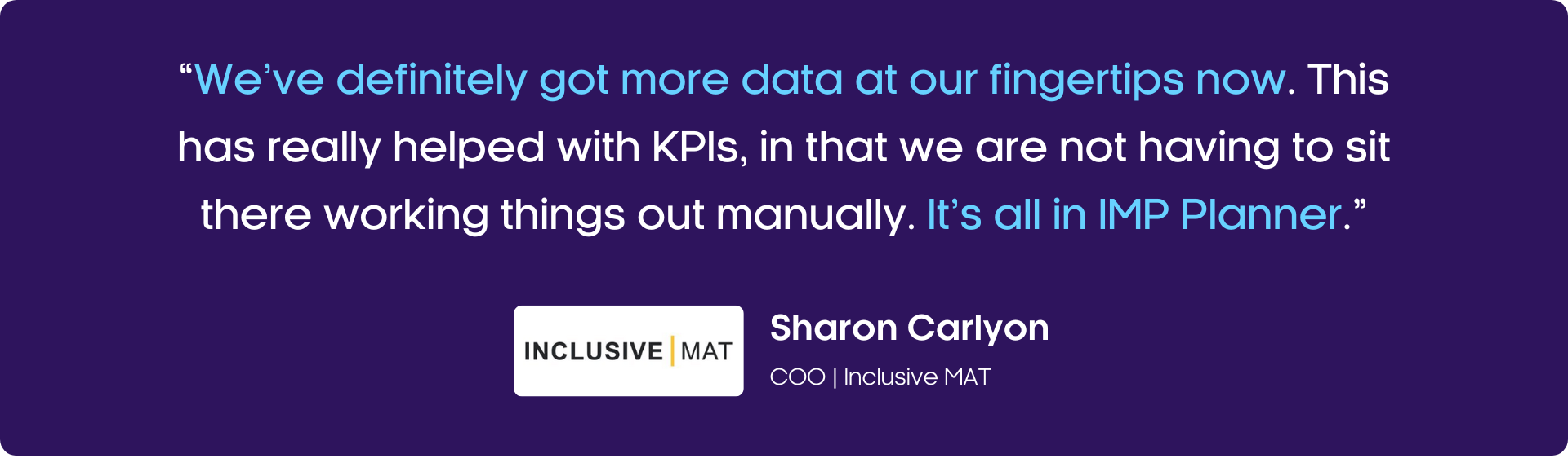 At a strategic level, and armed with additional insights and intelligence that support the Trust in operating even more efficiently, Sharon reflected: “We’ve definitely got more data at our fingertips now. This has really helped with KPIs, in that we are not having to sit there working things out manually. It’s all in IMP Planner. We can then take that to other members of the senior leadership team and our Board of Trustees.