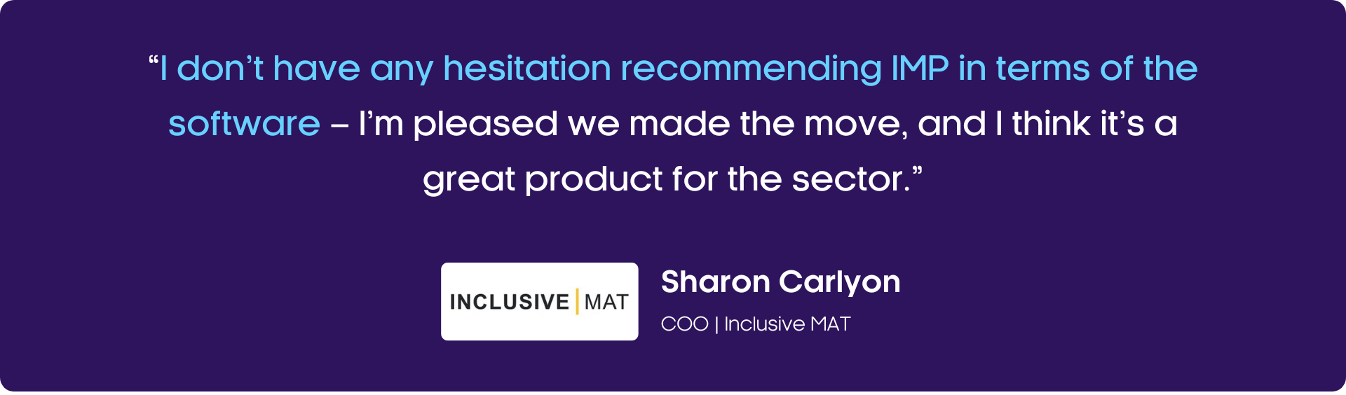 Sharon concluded: “I don’t have any hesitation recommending IMP in terms of the software – I’m pleased we made the move, and I think it’s a great product for the sector. Implementation and support has been brilliant all the whole way through. IMP also give so much in return, including Customer Connect events and the IMP Benchmarking Reports.