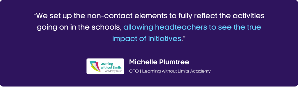 Through non-contact time analysis, IMP ICFP has helped the Trust to fully understand the impact versus cost. “We have really engaged with colleagues to analyse their activities in their schools, and it is really important not to underestimate the importance of non-contact activities in that,” Michelle said. “Some of our schools have a focus of coaching and mentoring, so people have time off-timetable to deliver or receive this, and we have other allocations like small group interventions etc that are funded through various funding streams. We set up the non-contact elements to absolutely reflect the activities that were going on in the schools which allows headteachers to see the true cost of these initiatives.